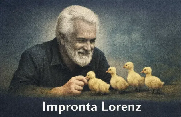 Konrad Lorenz, padre de la etología (estudio de la conducta animal) y premio Nobel de Fisiología y Medicina en 1973, describió la impronta. La impronta es el fenómeno por el que algunos animales recién nacidos (como los patitos del vídeo) siguen al primer ser vivo u objeto en movimiento que ven. Lo importante de aquella observación no es solo la anécdota de los patitos detrás del investigador, sino la idea de fondo: en ciertas especies existe una disposición biológica a establecer cercanía muy pronto, porque eso aumenta las probabilidades de supervivencia.